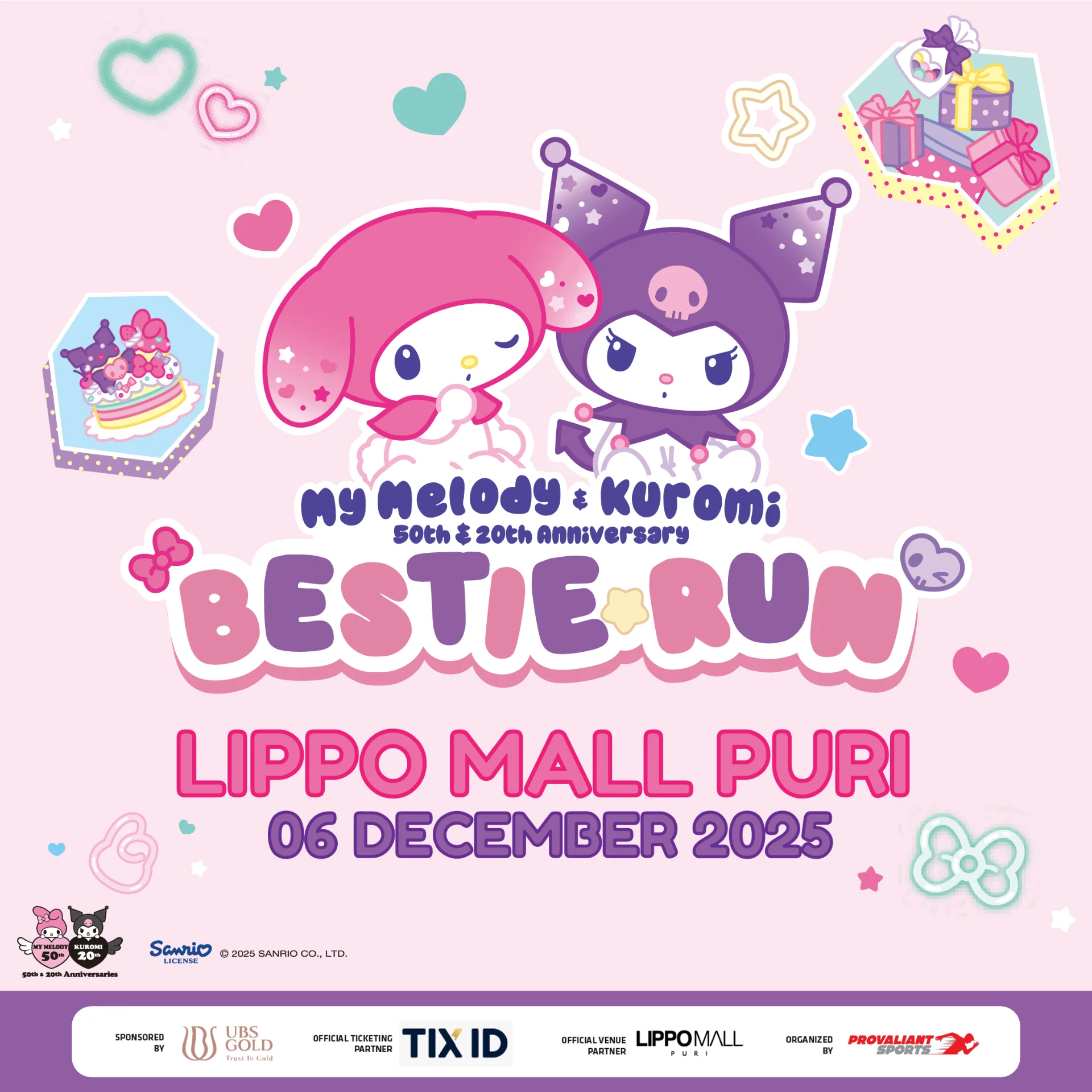 Celebrate friendship as we mark My Melody’s 50th Anniversary and Kuromi’s 20th Anniversary! 🩷💜 Join us for a special 5K Fun Run, brought to you by Provaliant Sports, Sanrio Southeast Asia, Lippo Mall Puri, and Pacific Licensing Studio Indonesia.