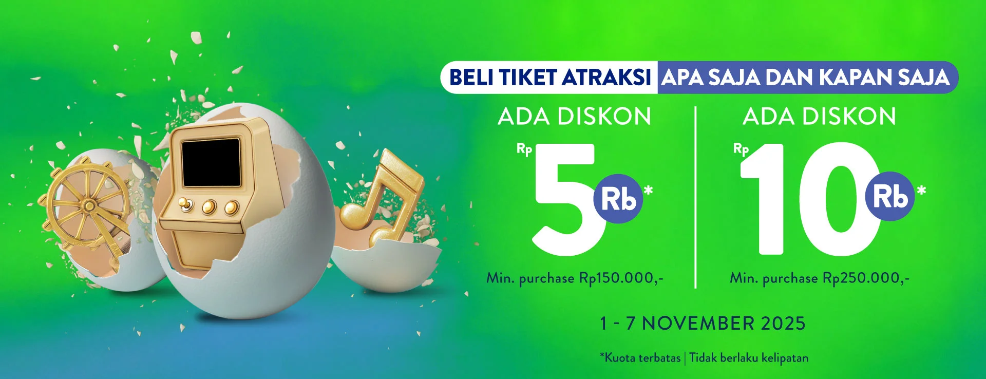 Segera dapatkan diskon TIX FUN kuota terbatas, berlaku untuk pembelian semua tiket, semua kategori, untuk masa pembelian 1-7 November 2025.