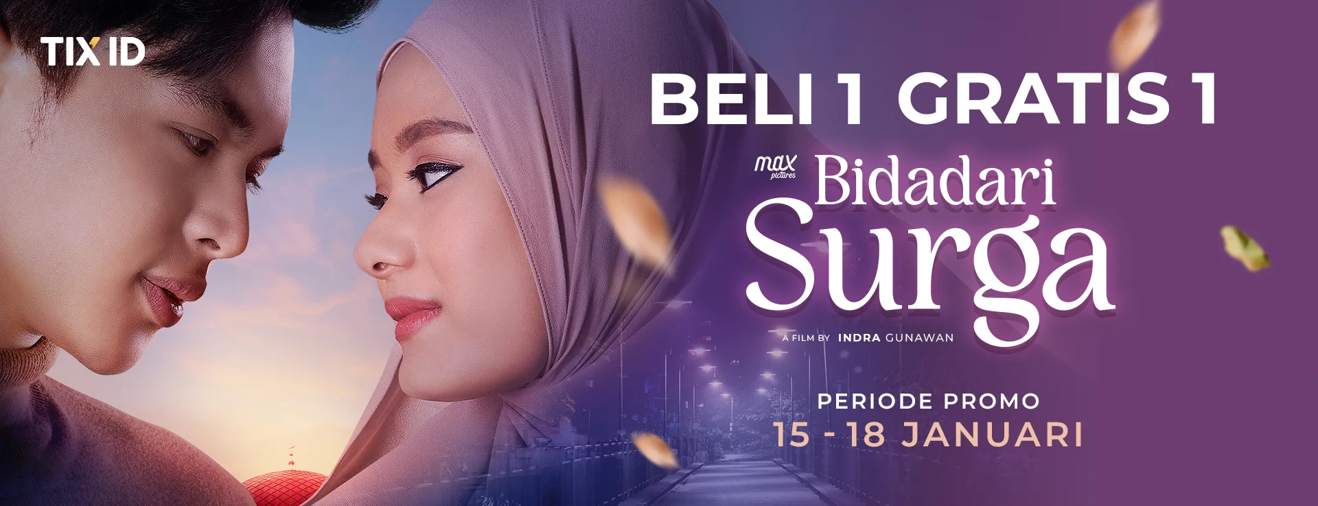 Dapatkan promo Buy 1 Get 1 Free film BIDADARI SURGA mulai tanggal 15 Januari 2026. Pesan tiketnya sekarang dengan klik tombol “Beli Tiket” di bawah ini!