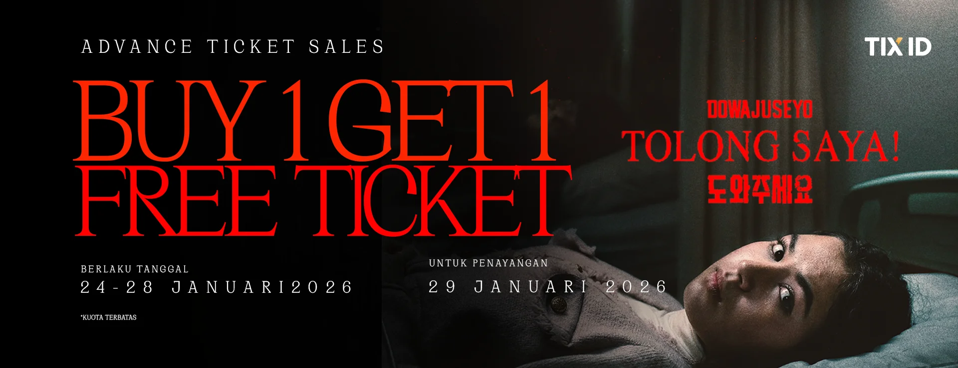 Dapatkan promo Buy 1 Get 1 Free film TOLONG SAYA! (DOWAJUSEYO) mulai tanggal 24 Januari 2026, untuk penayangan perdana tanggal 29 Januari 2026. Pesan tiketnya sekarang dengan klik tombol “Beli Tiket” di bawah ini!
