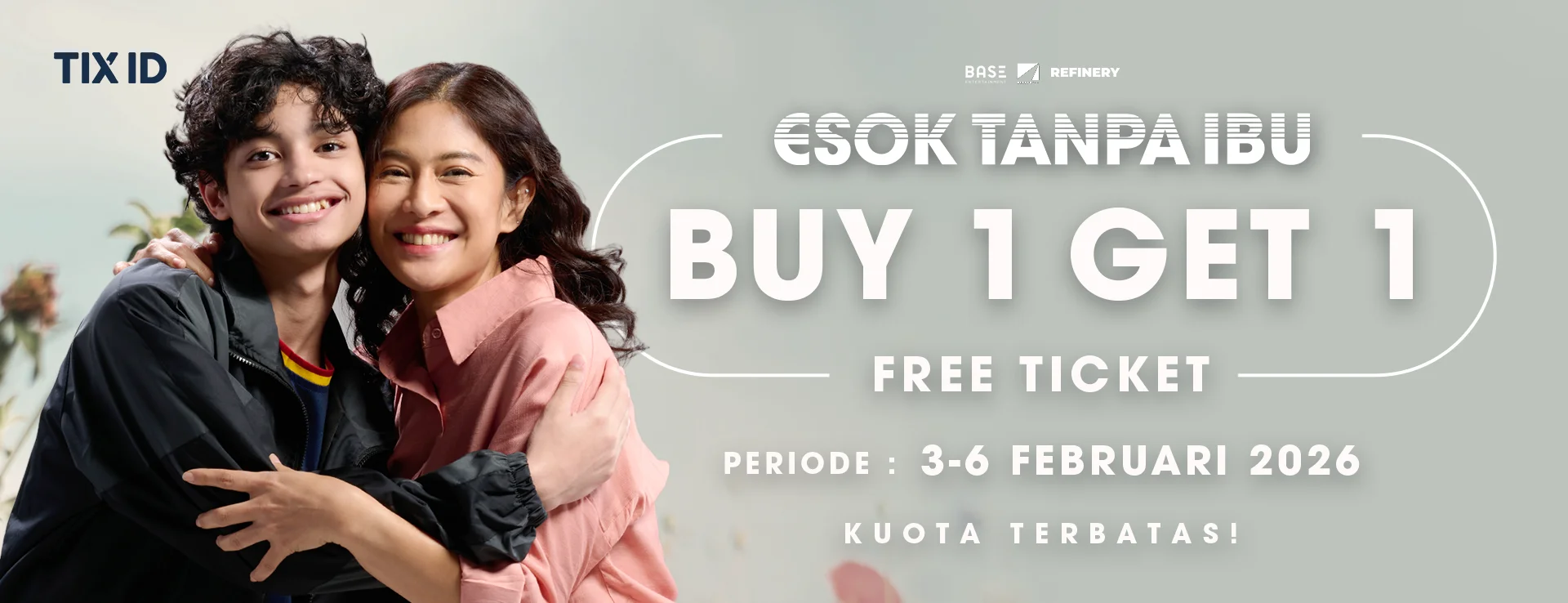 Dapatkan promo Buy 1 Get 1 Free film ESOK TANPA IBU mulai tanggal tanggal 03 - 06 Februari 2026. Pesan tiketnya sekarang dengan klik tombol “Beli Tiket” di bawah ini!