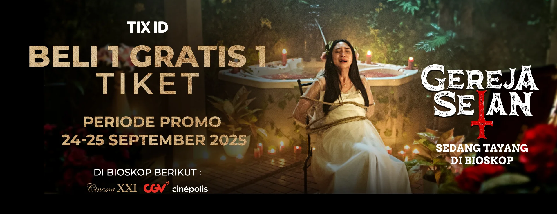 Dapatkan promo Buy 1 Get 1 Free film Gereja Setan mulai tanggal 24 - 25 September 2025. Pesan tiketnya sekarang dengan klik tombol “Beli Tiket” di bawah ini!