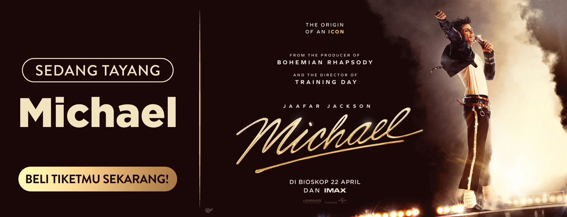 Segera pesan tiket nonton MICHAEL di bioskop kesayanganmu mulai tanggal 22 April 2026! Klik tombol “Beli Tiket” di bawah sekarang juga!