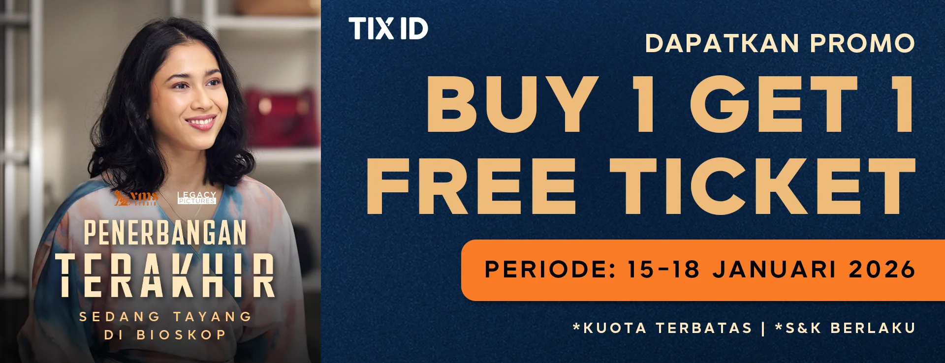 Dapatkan promo Buy 1 Get 1 Free film PENERBANGAN TERAKHIR mulai tanggal 15 Januari 2026. Pesan tiketnya sekarang dengan klik tombol “Beli Tiket” di bawah ini!