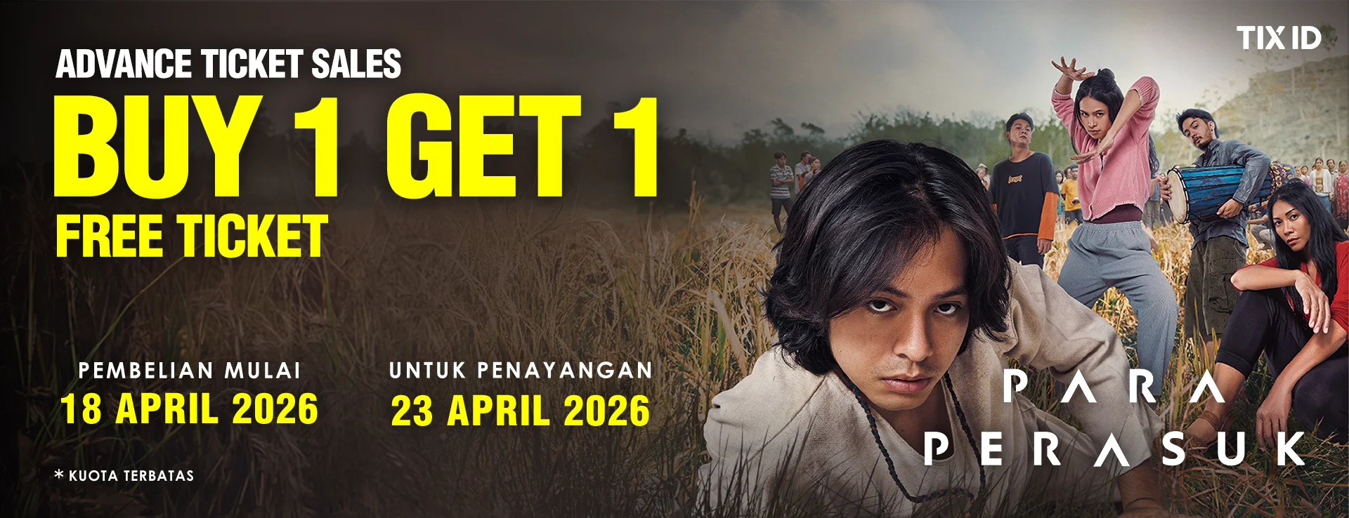 Dapatkan promo Buy 1 Get 1 Free film PARA PERASUK mulai tanggal 18 April 2026, untuk penayangan perdana tanggal 23 April 2026. Pesan tiketnya sekarang dengan klik tombol “Beli Tiket” di bawah ini!
