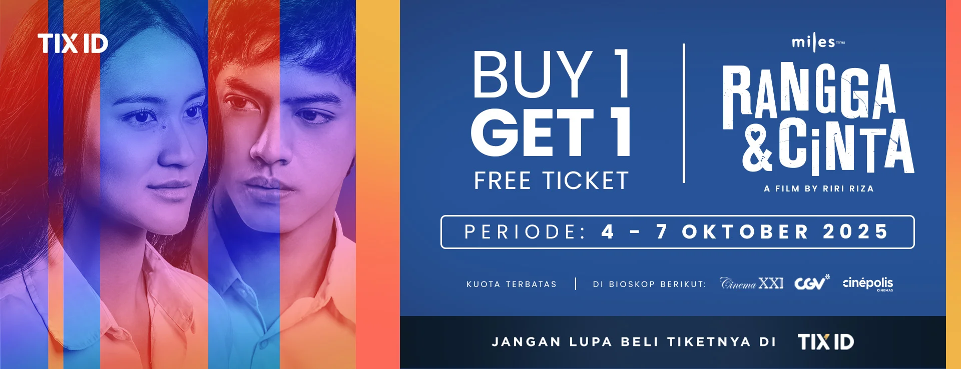 Dapatkan promo Buy 2 Get 3 Tickets film Rangga & Cinta pada tanggal 04 - 07 Oktober 2025. Pesan tiketnya sekarang dengan klik tombol “Beli Tiket” di bawah.