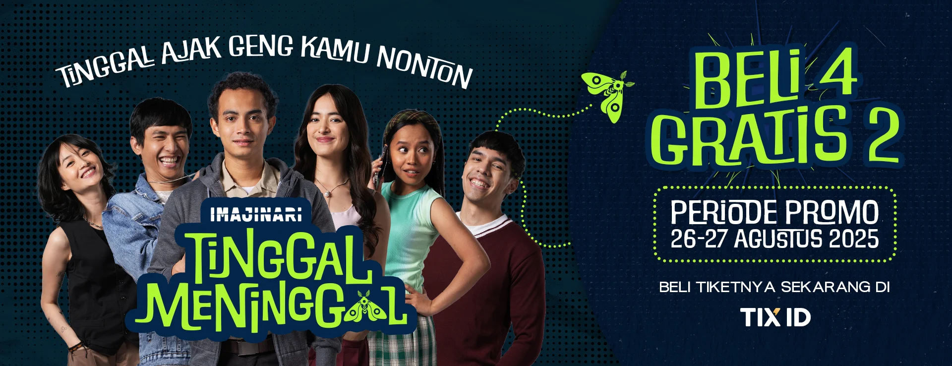 Dapatkan promo Buy 4 Get 2 Free Tickets film Tinggal Meninggal mulai tanggal 26 - 27 Agustus 2025. Pesan tiketnya sekarang dengan klik tombol “Beli Tiket” di bawah ini!