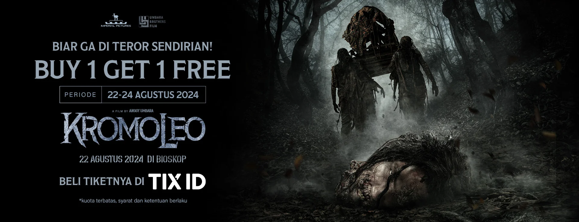 Dapatkan promo Buy 1 Get 1 Free film Kromoleo mulai tanggal 22 Agustus 2024. Pesan tiketnya sekarang dengan klik tombol “Beli Tiket” di bawah.